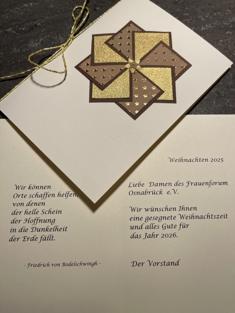 und die Damen des Osnabrücker Frauenforums verbrachten in gemütlicher Runde bei Kaffee/Tee mit Kuchen und Keksen sowie musikalischen und literarischen Beiträgen ein paar festliche Stunden im Farmhouse No. 50 in Osnabrück-Hellern.